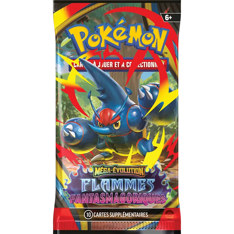 Entrez dans un brasier de puissance et de ténèbres avec Flammes Fantasmagoriques, la deuxième extension de la série Méga-Évolution du JCC Pokémon. Cette édition met à l’honneur des Pokémon légendaires comme Méga-Dracaufeu X ou Méga-Ectoplasma, accompagnés de nouvelles cartes Pokémon-ex redoutables, prêtes à dominer l’arène !